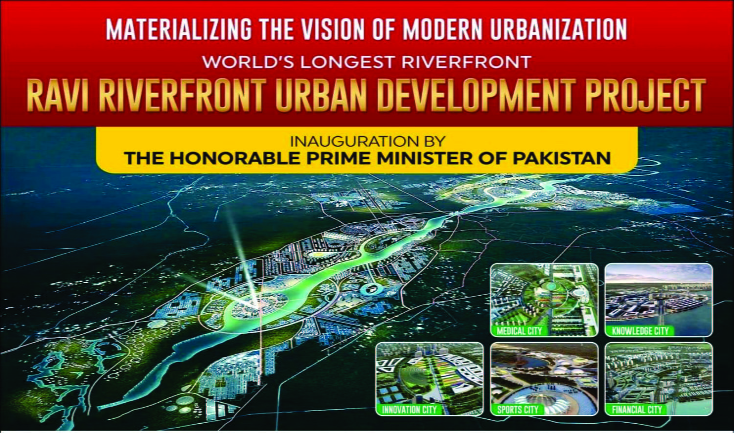 حکومت وقت نے اس تاریخی و جدید شہر لاہور کو جدید بین الاقوامی شہر کی طرف مزید گامزن کرنے کے لیے راوی ریور اربن ڈویلپمنٹ پراجیکٹ کا شاندار افتتاح کر دیا ہے جو عالمی معیار کی جدید ترین رہائشی و کمرشل سہولیات اور دریائے راوی کے گردونواح میں وسیع و عریض حدود اربعہ میں ایک مکمل نیا شہر لاہور میں ماحول دوست اصولوں پر ڈیزائن کردہ تعلیم،صحت،کلچر،سپورٹس،اور معتددثقافت،ٹیکنالوجی،کھیلوں، پارکس،سیر گاہیں 40کلومیٹرطویل جھیل دریائے راوی کے پانی کوصاف کر کے پینے کے قابل بنانے منصوبہ اورو سیع پیمانے پر شجر کاری تیزی سے ہوتی ہوئی ڈویلپمنٹ اور دیگر سہولیات کے ساتھ سرمایہ کار کی انویسٹمنت کی ہوئی رقوم کا تحفظ پنجاب حکومت کے ویژن کی پہچان ہے یہ پراجیکٹ لوگوں کے معیار زندگی کو بلند کر کے ترقی یافتہ شہروں کی صف میں شامل کر دے گا۔
