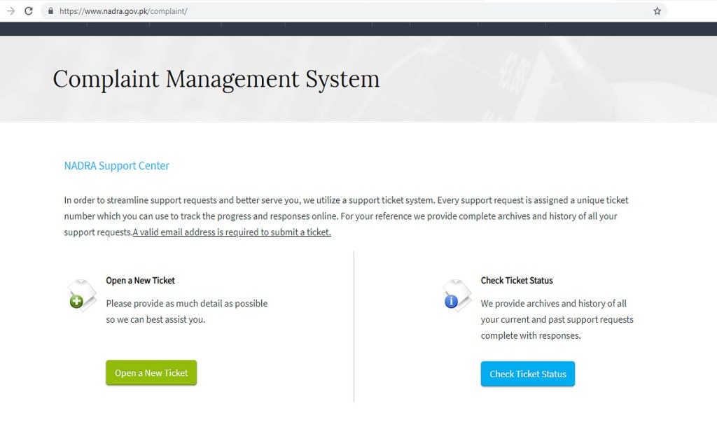 A digital complaint system is available on the official website of NADRA